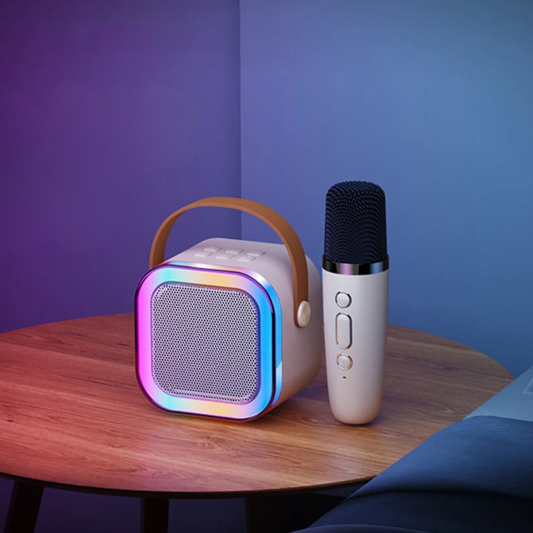 Transforma tus momentos musicales con nuestro innovador sistema de karaoke portátil. Este conjunto incluye un altavoz con luces LED y un micrófono inalámbrico, diseñados para ofrecerte una experiencia de sonido envolvente y divertida 🕺🏼🪩