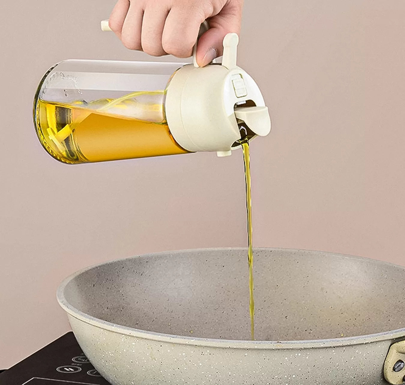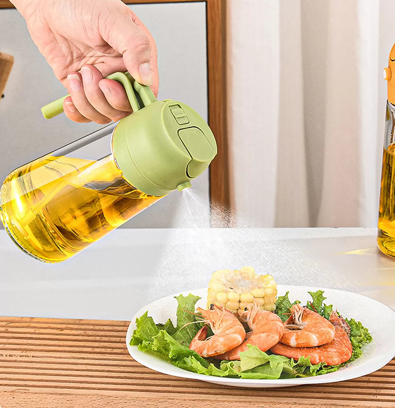Este innovador dispensador combina un aspersor y un dispensador tradicional en un solo producto, ofreciendo una forma conveniente y elegante de rociar y verter aceite 👩🏻🍳🫗