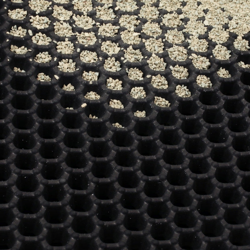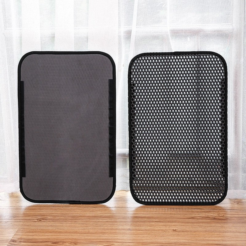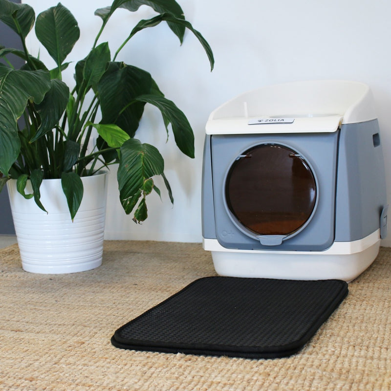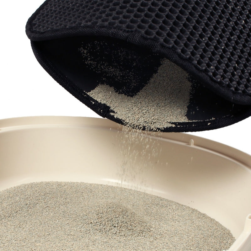 Ahora la arena y sobrantes de su caja caerán y quedarán en la alfombrilla. La forma más cómoda de recoger la arena sanitaria evitando que llegue al suelo!