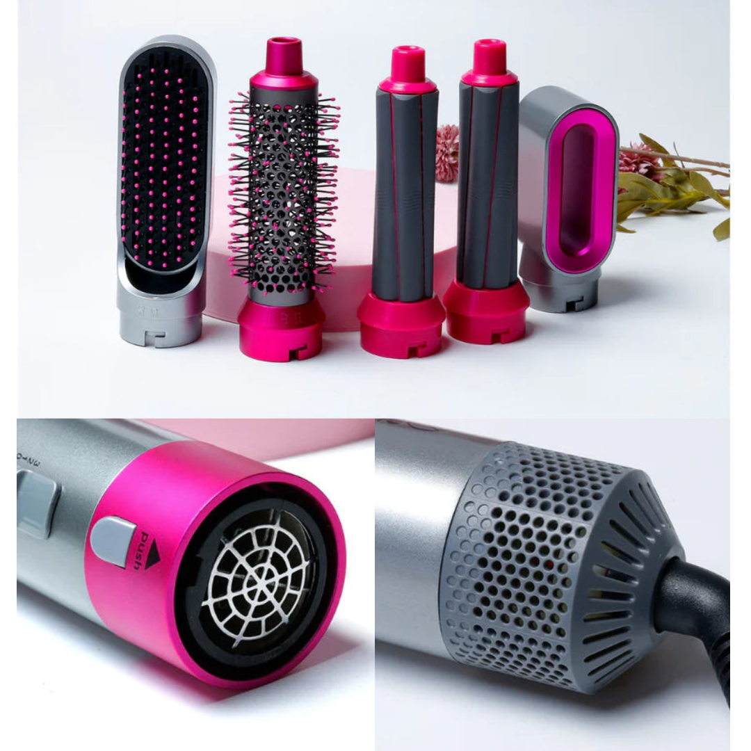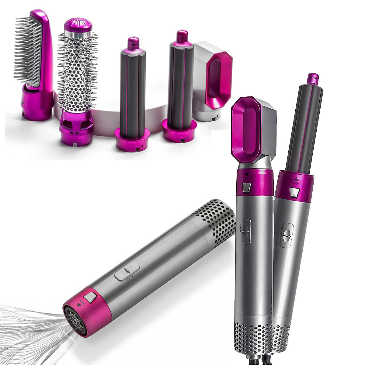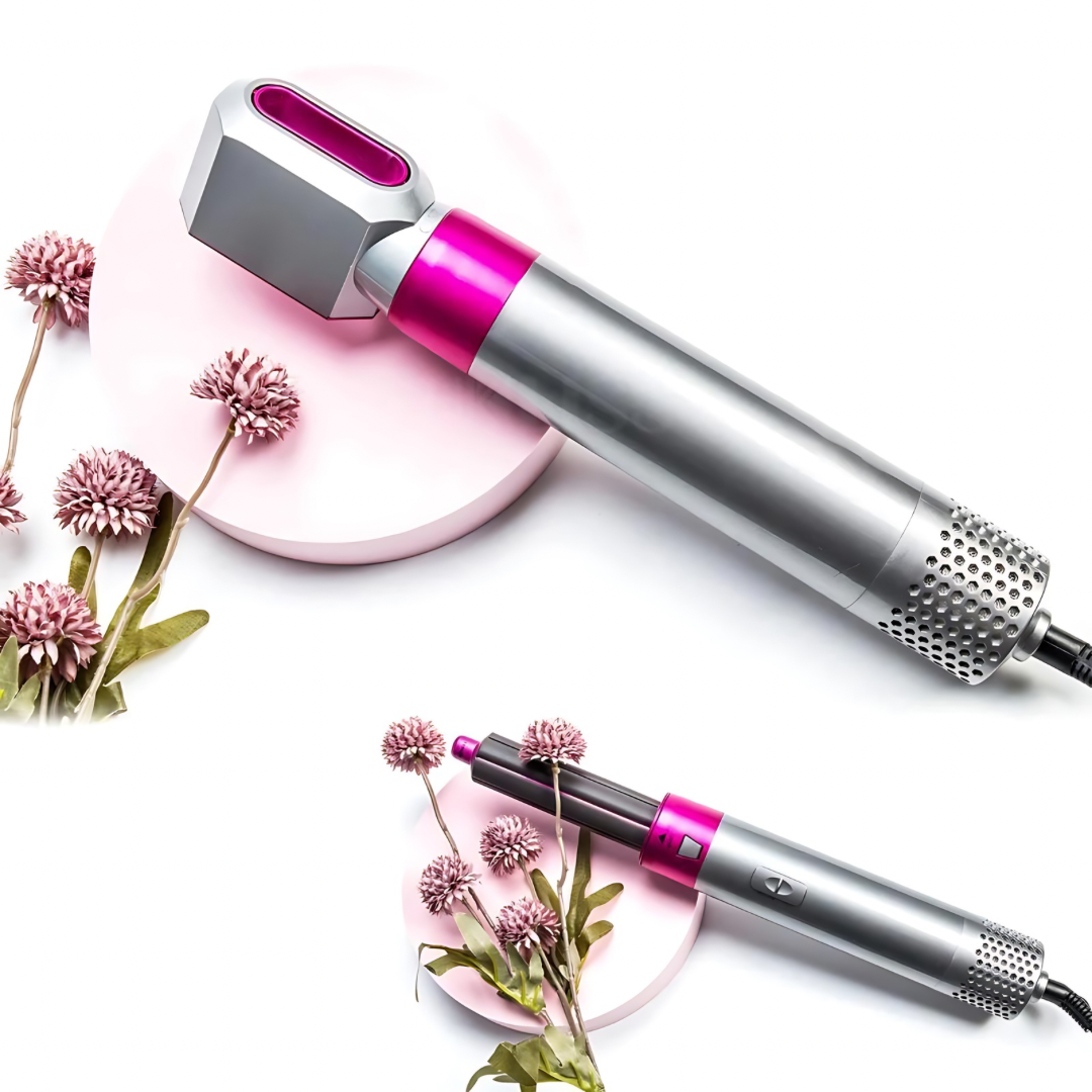 Este versátil dispositivo combina cinco funciones esenciales en uno solo, ofreciéndote la potencia de un voluminizador, un cepillo de aire caliente, un masajeador de cuero cabelludo, un rizador y un alisador, ¡todo en un solo producto! 🤩