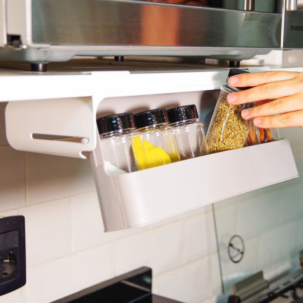 Este especiero se monta en la pared, liberando valioso espacio en tus estantes y mostradores. Además, su diseño rebatible permite guardar y acceder a tus condimentos de manera conveniente 👩🏻🍳🧂