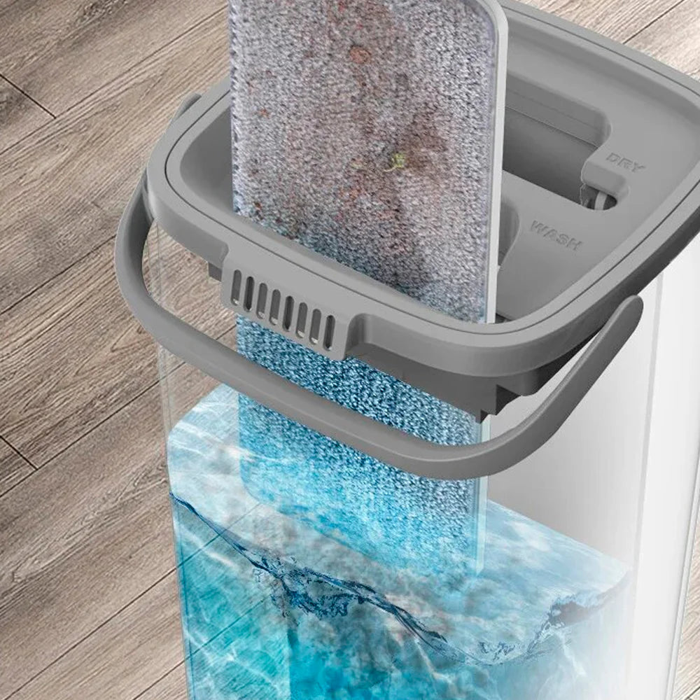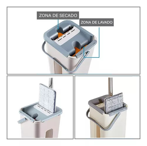 Este innovador modelo de mopa destaca por su diseño plano, que facilita la limpieza debajo de muebles y áreas de difícil acceso.